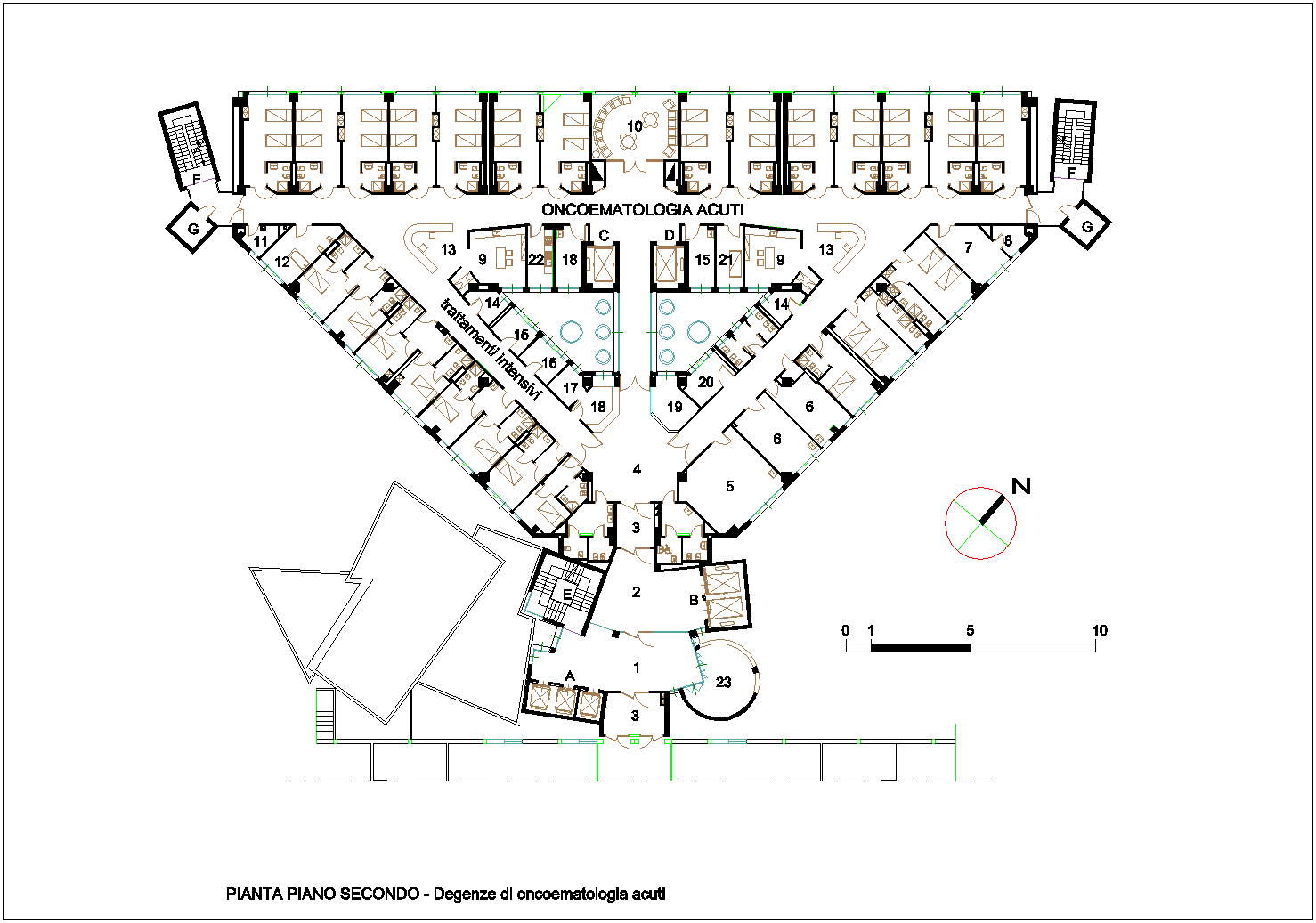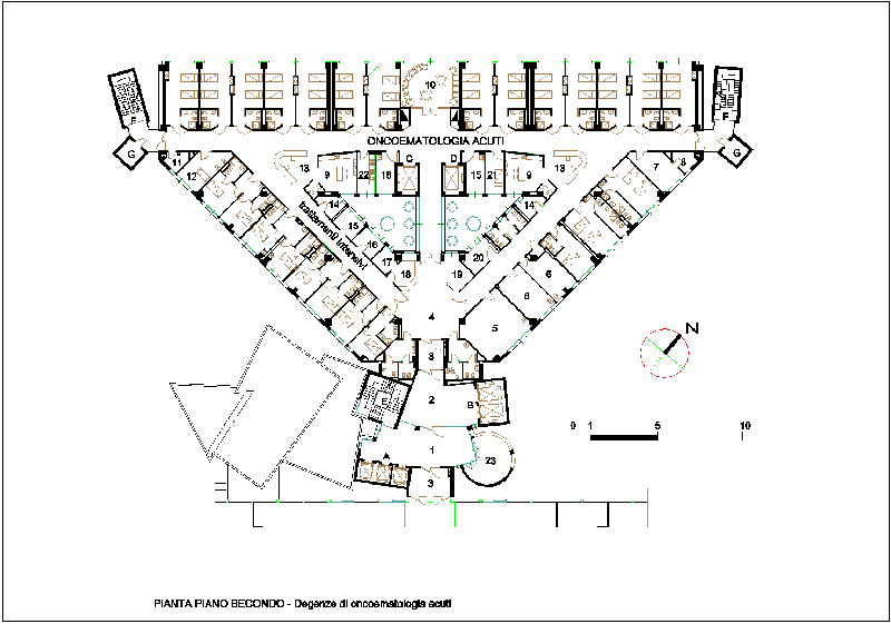 - - Pianta del piano secondo destinato a degenze oncoematologia acuti.