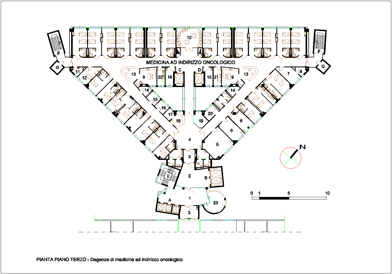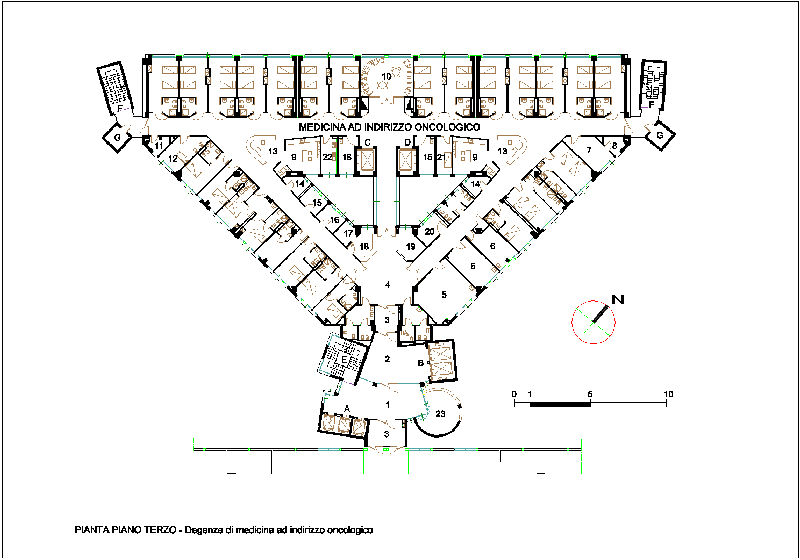 - - Pianta del piano terzo destinato a degenze di medicina ad indirizzo oncologico.