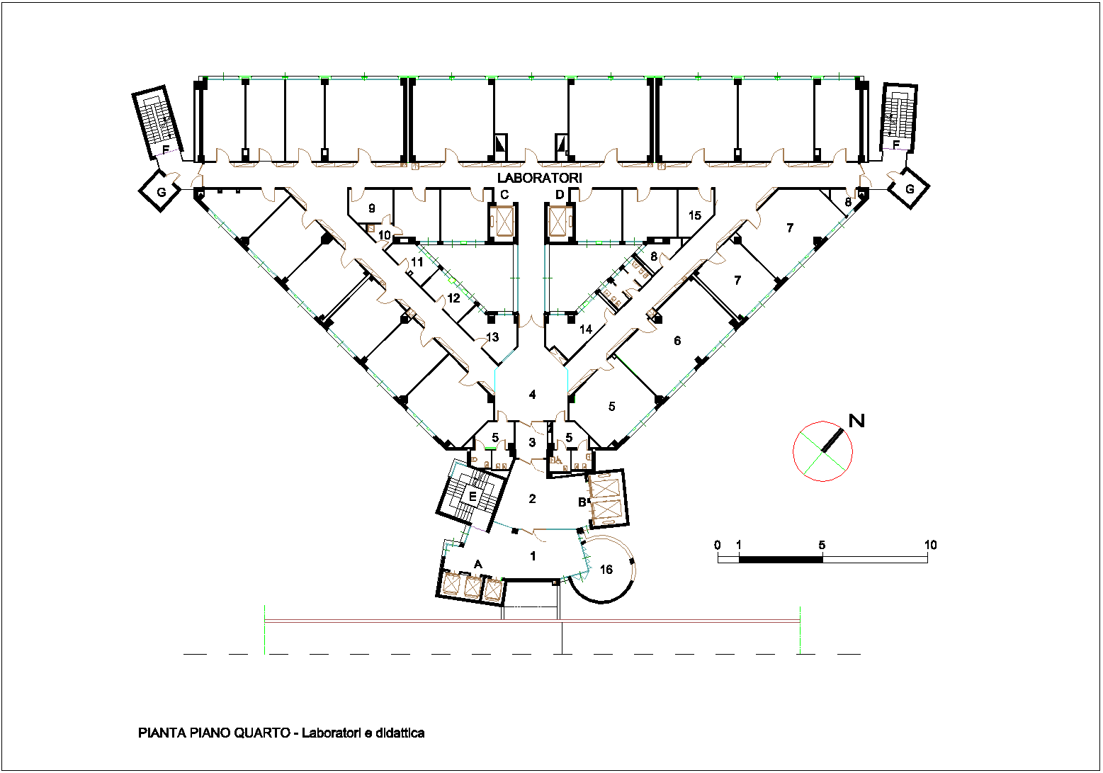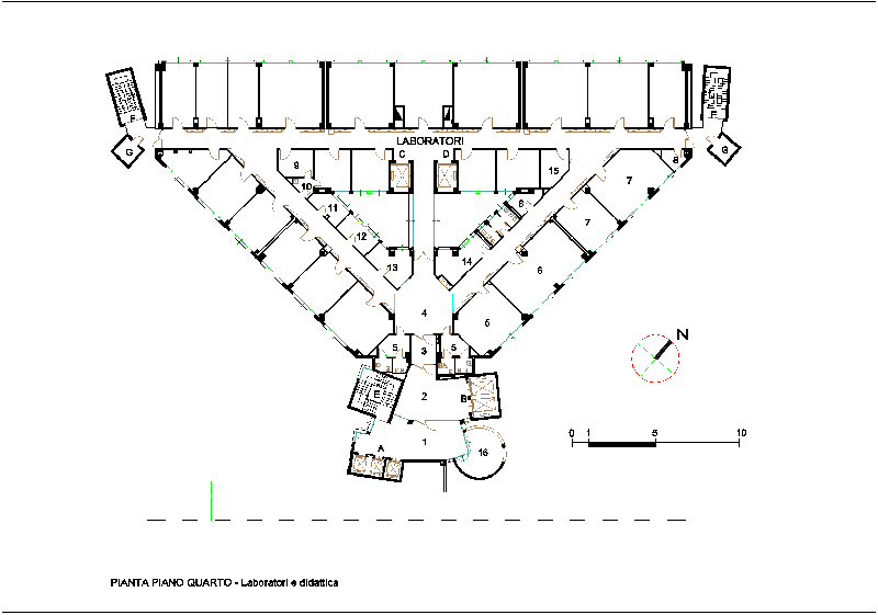 - - Pianta del piano quarto destinato a laboratori e aule didattiche.