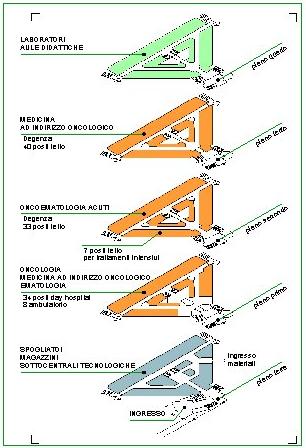 - - Schema assonometrico con la distribuzione delle funzioni ai piani
