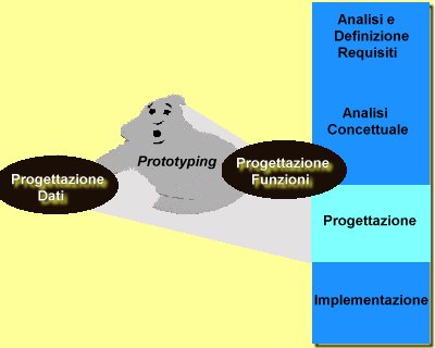 Negli ultimi anni, nello scenario in cui un progetto software nasce e si sviluppa , è entrato in gioco un nuovo attore, il prototipo, uno strumento potentissimo che abbiamo già incontrato nelle altre fasi, ma che qui ha un utilizzo completamente diverso. La tecnica del Prototyping, che solo ora sta assumendo la dignità di modello grazie a tentativi di formalizzazione (es. "The Prototyping Methodology" di Kenneth E. Lantz) e alla disponibilità di ambienti di sviluppo visuali versatili e relativamente semplici, pervade le due attività, nel senso che permette di unire in modo intuitivo la funzionalità da implementare con la base dati tramite una vista logica.