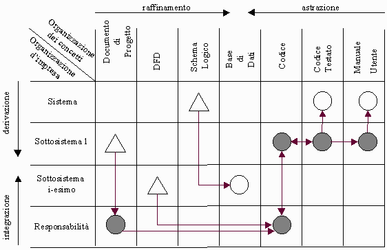 I ritorni ai livelli precedenti avvengono solo quando si riscontrano delle anomalie nella fase di integrazione delle responsabilità a livello di Sottosistema 1 o di test del codice.