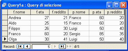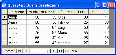 SELECT m.nome, m.eta, m.reddito, f.nome, f.eta, f.reddito