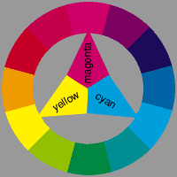 Usa i colori di stampa ciano, magenta e giallo come primari.