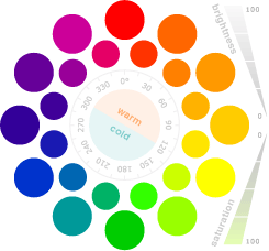 Scheme: monochromatic contrast (base + complement) soft contrast (split complements) double-contrast (2 neighbors + complements) analogic (base + neighbors)