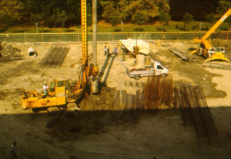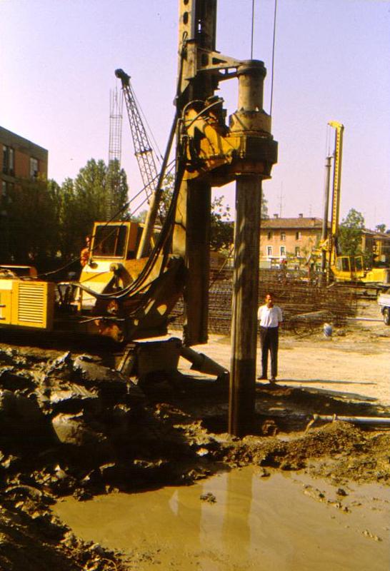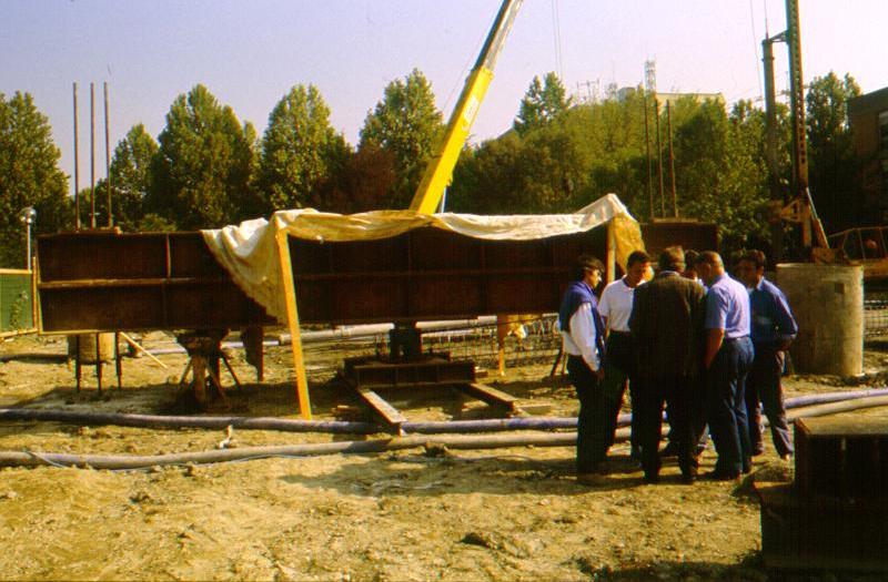occorre avere altri due pali vicini (nel nostro caso non è un problema, altrimenti occorre mettere i pali per il solo collaudo): i due pali vengono legati a una trave che passa sopra il palo da collaudare: a questo punto bastano un martinetto idraulico e uno spessimetro ancorato al suolo (così non occorre misurare altre variabili, come la flessione della trave o l'allungamento dei tiranti o il sollevamento dei pali di ancoraggio); si carica lentamente il palo col martinetto fino al carico di lavoro (300 tons) e si annota l'abbassamento progressivo; poi si scarica il palo, sempre annotando l'abbassamento: quando il palo è scarico, l'abbassamento è lo sprofondamento; si carica nuovamente il palo fino al doppio del carico di esercizio (600 tons) e infine si scarica.