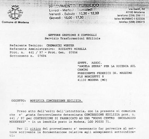 Il 4 giugno 1997 è stata notificata dagli Uffici Comunali