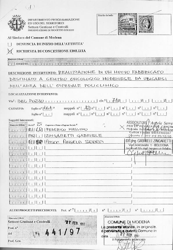 Il 27 febbraio 1997 è stata presentata agli Uffici Comunali