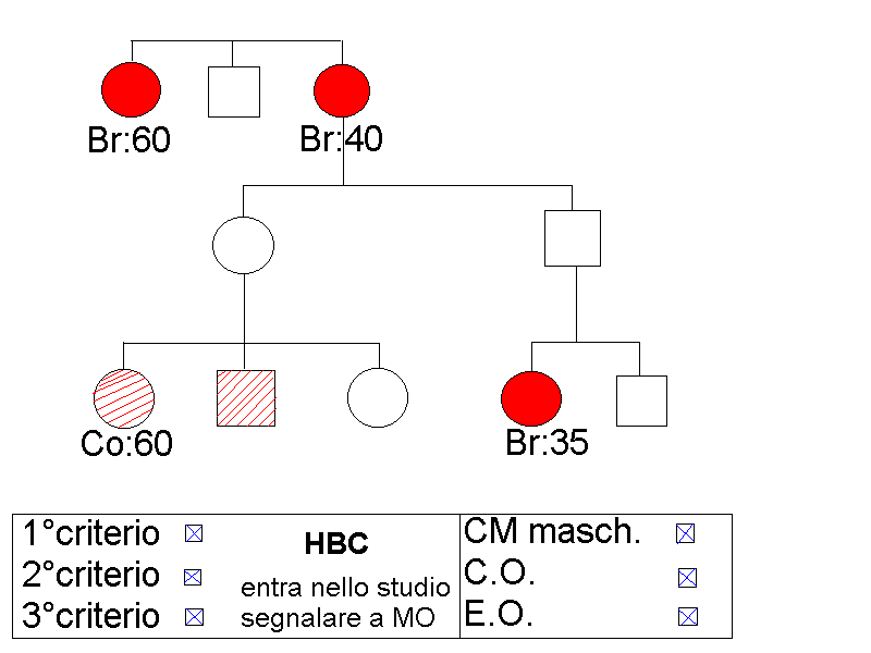 I° criterio: Almeno 3 casi di CM (Carcinoma Mammario) insorti in 2 differenti generazioni.