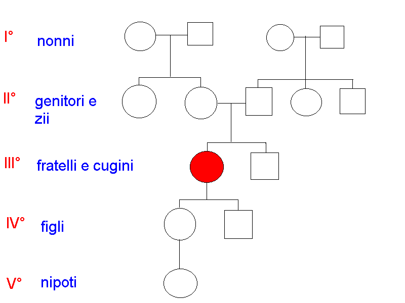 IIIa generazione: quella della probanda, dei fratelli e sorelle e dei cugini
