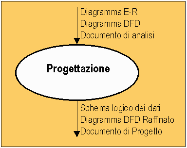 Il progettista riceve dal team di lavoro che ha analizzato le funzionalità da soddisfare, una serie di prodotti indispensabili che sono il punto di partenza per la sua attività: il documento di analisi, lo schema Entità -Relazione e il Data Flow Diagram delle funzioni.