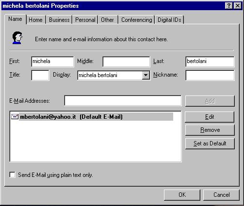 | Cc: | per inviare il messaggio ad altre persone oltre il destinatario riportato nel "To". Ogni destinatario elencato in questo campo quando riceve il messaggio vede che è stato mandato anche agli altri (tutti quelli elencati nel campo Cc) |