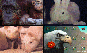 <H3>Esempio di Mappa Sensitiva (Client-Side)</H3> <CENTER> <IMG SRC="images/animali.gif" USEMAP="#mappa"> </CENTER> <MAP NAME="mappa"> <AREA SHAPE="RECT" COORDS="0,0,146,84 " HREF="orang.htm"> <AREA SHAPE="RECT" COORDS="148,0,297,84 " HREF="coniglio.htm"> <AREA SHAPE="RECT" COORDS="0,86,146,180 " HREF="pigs.htm"> <AREA SHAPE="RECT" COORDS="148,86,297,180 " HREF="eagle.htm"> </MAP>Aggiungendo l'attributo USEMAP al tag IMG si indica al browser che si tratta di una mappa di tipo Client-Side. L'attributo USEMAP può essere usato unitamente a ISMAP, utilizzato invece per mappe sensitive che necessitano di un server, ad esempio utilizzando una istruzione di questo tipo si presuppone che l'utente utilizzi un browser di tipo Client-Side: