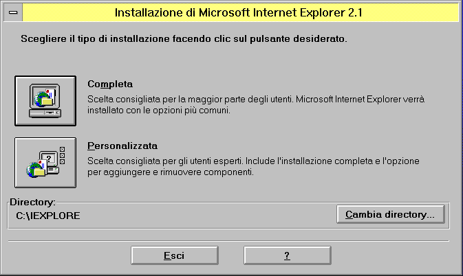 scegliere la directory in cui verrà installato il browser (C:\IEXPLORE)