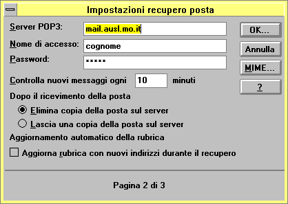 (N.B. mail.ausl.mo.it), il cognome e la password