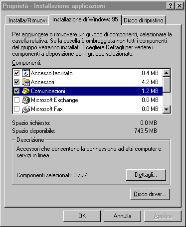 selezionare la linguetta Installazione di Windows 95