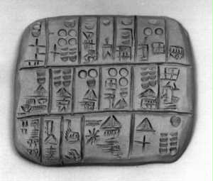 una tavoletta sumera in terracotta contenente alcuni valori