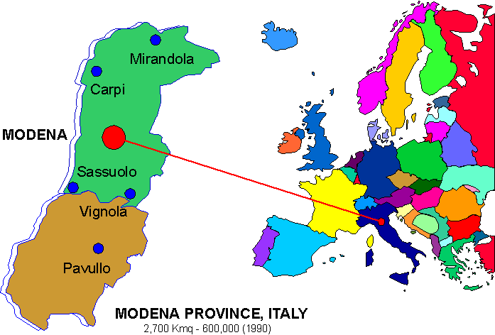 La provincia di Modena: 2.700 Kmq - 600.000 residenti (1990).