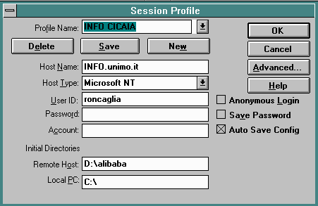 AutoDetect: selezionare questa modalità quando si desidera trasferire tutti i file in formato binario ad eccezione di quelli che hanno un'estensione specificata dal Menu Option Extension che vengono trasferiti in modalità ASCII.