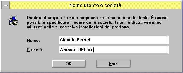 digitare il proprio nome completo ed eventualmente la società (li rileva dalle impostazioni di Windows)