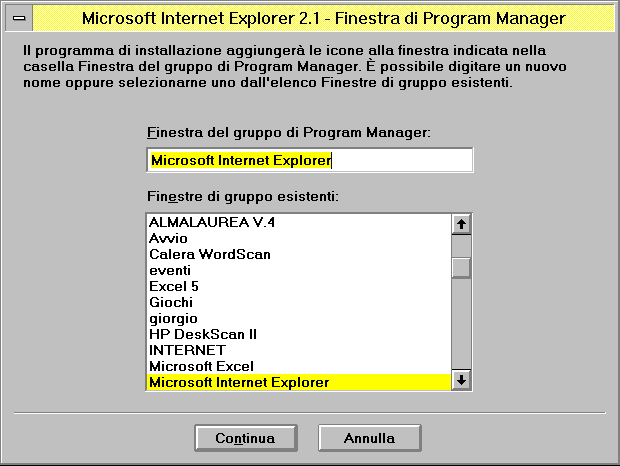 scegliere la directory in cui verrà installato il browser (C:\IEXPLORE)