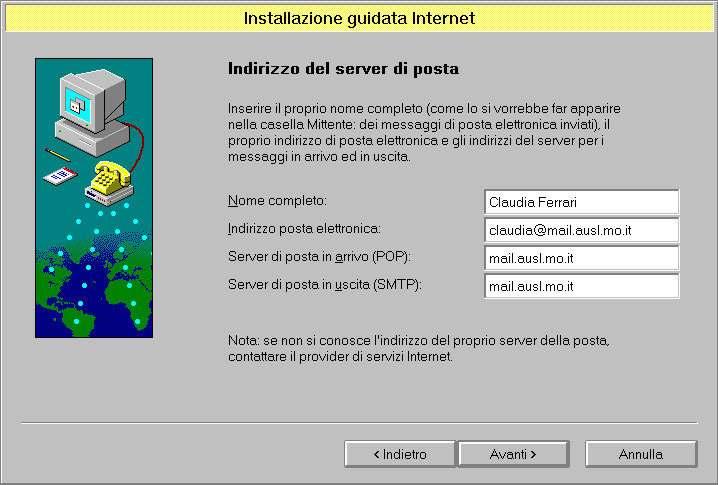 (N.B. cognome@mail.ausl.mo.it), il server di posta in arrivo ed in uscita