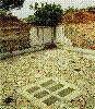 pavimentato al centro con lastre fittili e presenta una canaletta per portare l'acqua piovana nella cisterna coperta a volta, la piú antica finora conosciuta. Da un