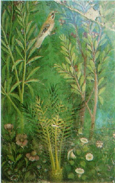 Pittura della Casa del Bracciale d'Oro a Pompei che mostra un giardino fiorito