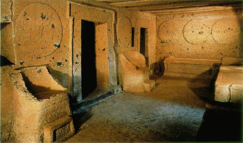 Interno della tomba degli Scudi e delle Sedie. VI-V a.C. Cerveteri(Lazio)