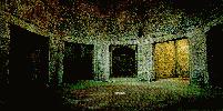 all'interno vi erano campagne ricche di campi, vigneti, pascoli e boschi, con moltissimi animali domestici e selvatici di ogni specie. Nel resto della costruzione, ogni cosa era ricoperta d'oro e abbellita con gemme e madreperle. Il soffitto dei saloni per i banchetti era a tasselli d'avorio mobili e perforati, in modo da poter spargere fiori e profumi sui convitati. Il principale di questi saloni era rotondo e girava su se stesso tutto il giorno, continuamente, come la terra. Nelle sale da bagno scorrevano acque marine e acque di Albula (solforose), e quando, alla fine dei lavori, Nerone inaugurò un palazzo di tal fatta, lo approvò soltanto con queste parole: "Finalmente comincerò ad abitare come un uomo! "» .