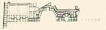 La forma si presentava nettamente distinta in due parti, di cui una caratterizzata da un impianto semplice e lineare racchiudente al centro un grande peristilio rettangolare, l'altra piú movimentata, contraddistinta dall'uso delle linee curve, gravitanti intorno ad un ampio cortile trapezoidale e, proseguendo, ad una sala ottagonale. Quest'ultimo ambiente, nel quale vennero adottate particolari e geniali soluzioni tecniche per arrivare alla copertura a cupola, si può considerare un importante caposaldo nera storia dell'architettura romana.