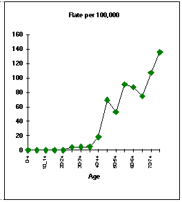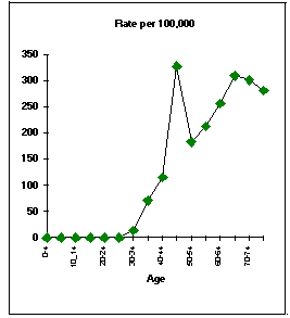 The incidence rate increased with age (as shown in the figure) starting with the 40-44 years age class.