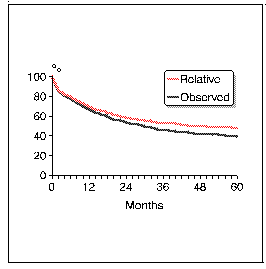 The observed and relative 5-year survival rate of