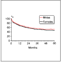 the relative survival turned out to be 51% in men and 46% in woman.