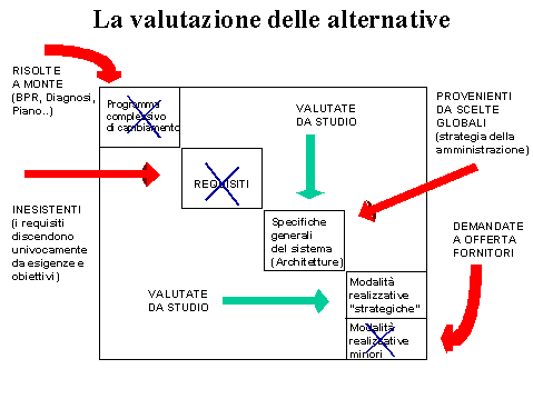 Ovviamente può anche darsi il caso che su tutta una serie di aspetti l’amministrazione abbia già definito degli standard a livello generale, validi quindi per tutto il sistema informativo e per tutti i progetti. Anche in questo caso il problema dell’esame delle alternative non si pone in quanto si dovrà semplicemente registrare l’esistenza di tali indicazioni, che saranno poi recepite nel capitolato e costituiranno vincolo per i fornitori.