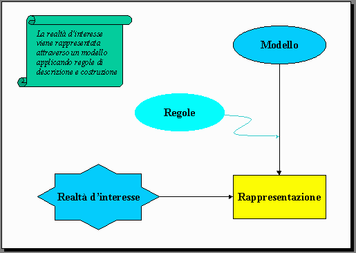 La rappresentazione della realtà di interesse si costruisce scegliendo un modello e applicando un insieme di regole di descrizione e costruzione. Il processo è schematizzato in Figura 5.1.1.