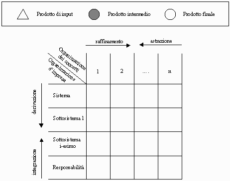 I movimenti tra i vari livelli della coordinata di organizzazione d’impresa possono avvenire sia in direzione bottom-up (integrazione) che top-down (derivazione). Nel primo caso partendo da livelli organizzativi inferiori, si genera un prodotto relativo ad un livello organizzativo superiore. Nel secondo caso partendo da un livello superiore si generano uno o più prodotti relativi ad un livello organizzativo inferiore.