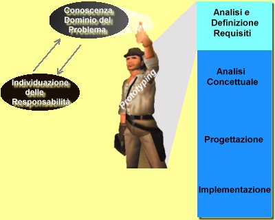 L’analista rappresenta le prime responsabilità percepite, realizza il primo prototipo in ambiente visuale e lo sottopone all’attenzione dell’utente. Ogni volta che si percepisce una nuova responsabilità di pari livello si incrementa il prototipo.