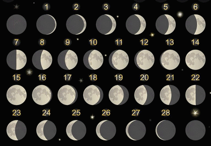 giorno della fase lunare - età della luna: 0 Luna nuova, da 1 a 14 Luna crescente, 15 Luna piena, da 16 a 29 Luna Calante | |||