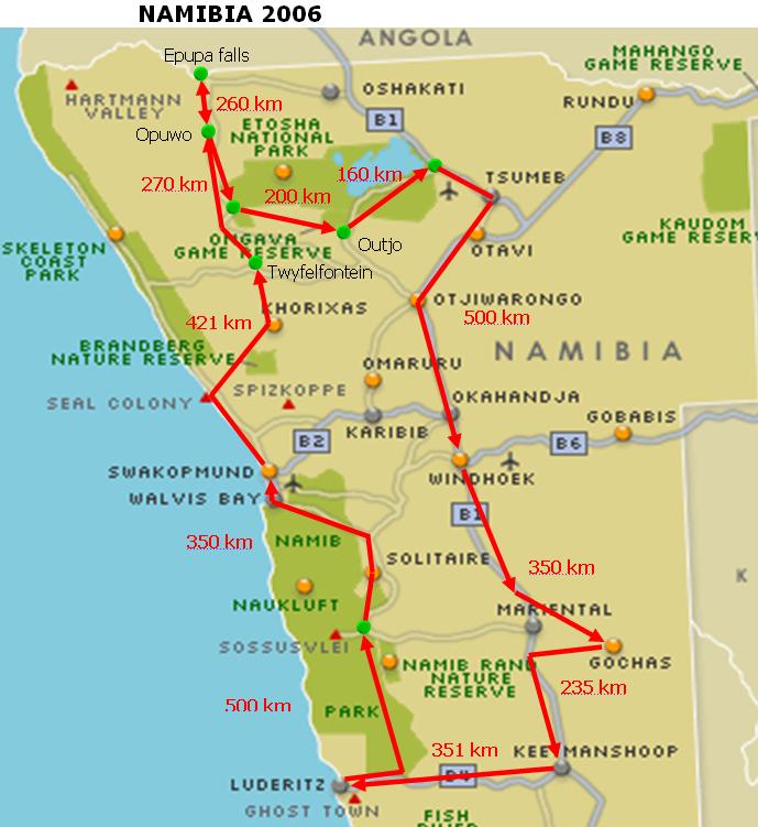 | 01/09/06 | 160 | Etosha Mokuti Lodge | (75 kilometres after Tsumeb) | |