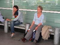 L'autista arriva in ritardo e facciamo una coda mostruosa all'imbarco. Per fortuna l'aereo č in ritardo cosė riusciamo a partire.