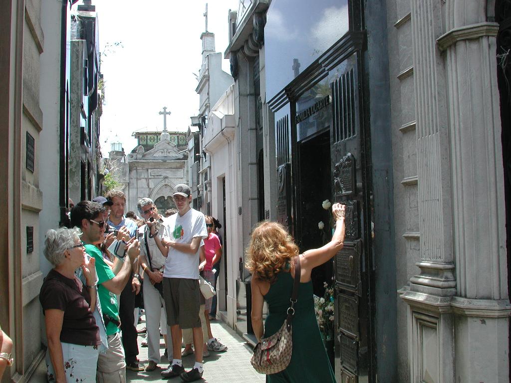 e visitiamo la tomba di Evita Peron: stano cimitero, le bare giacciono in bella vista dentro le cappelle.