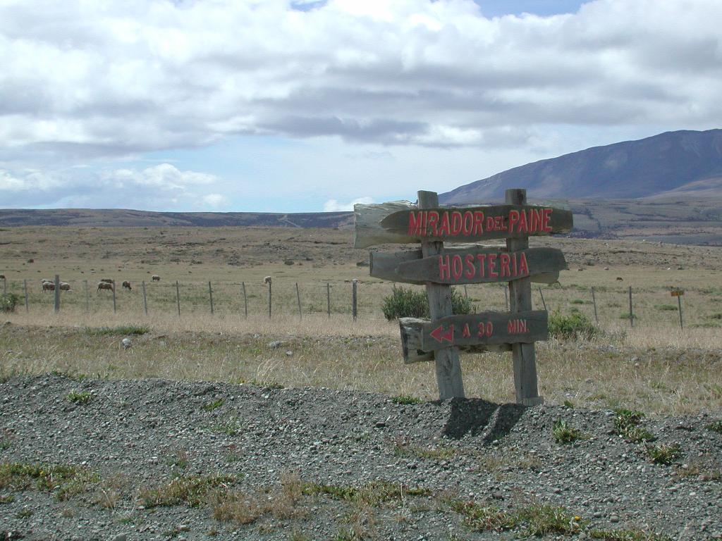 Vediamo tanti laghi dai nomi sbagliati poi, verso le 19, finalmente scopriamo un cartello con Estancia al Lago + Hostaria Mirador del Paine.