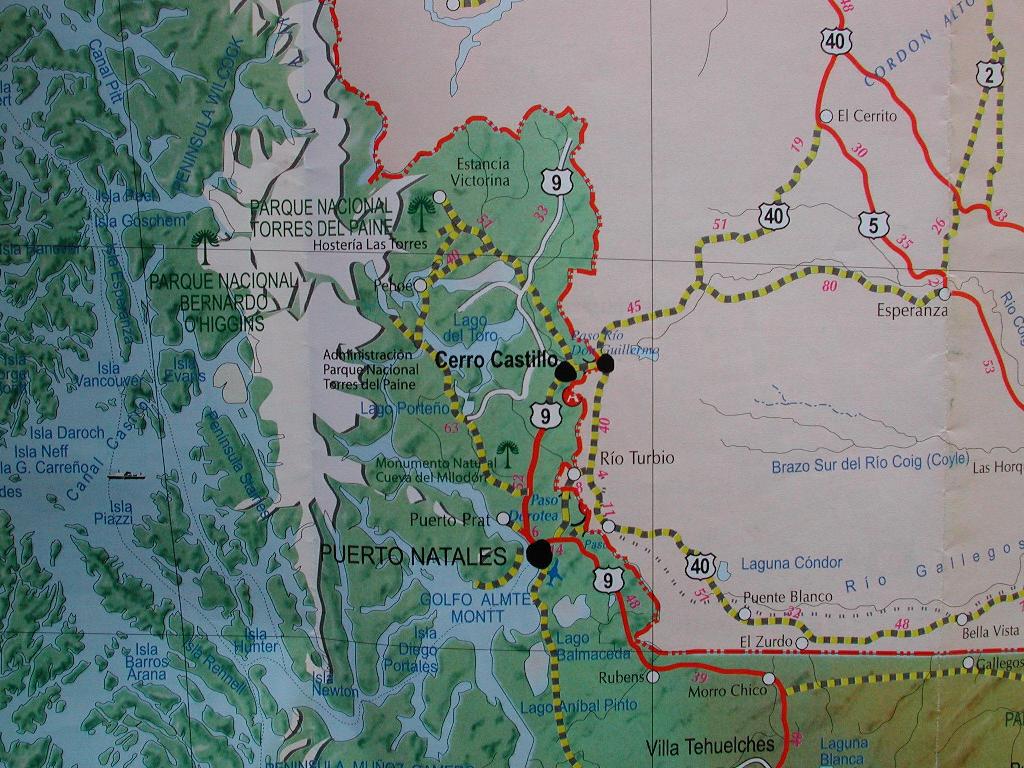 Hotel Mirador del Paine per la notte. Esiste ma la strada che dovremo prendere inizia fuori cartina, quindi auguri!