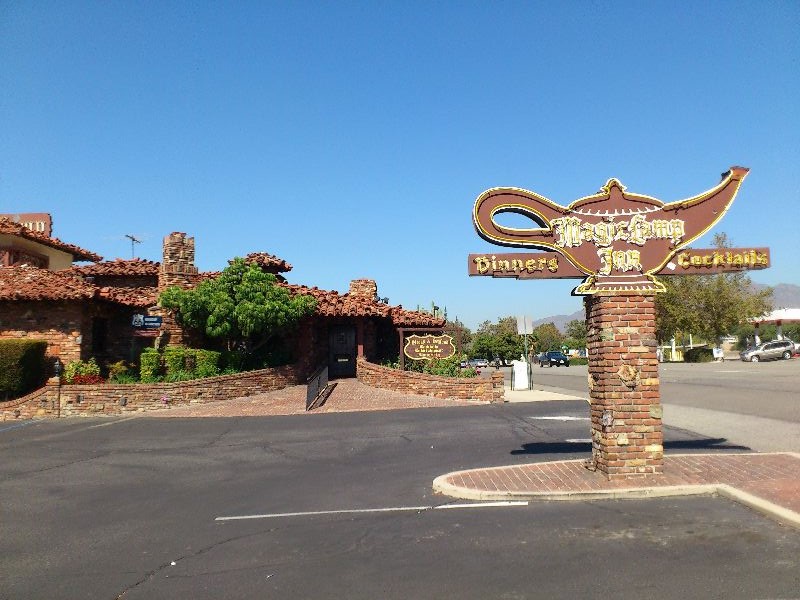 Passiamo per Fontana ma non vediamo la prevista baracchetta a forma di arancia, a Rancho Cuca Monga ci fermiamo alla Azienda vinicola con grande botte che segnala “Oldest Winery” e all’insegna della Lampada di Aladino del “Magic Lamp Inn”. Senza soste passiamo Upland, Claremond, Laverne, San Dimas, Glendora, Duarte, Monrovia e Arcadia.