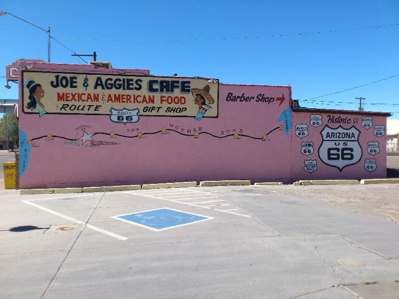Usciamo dal Parco e andiamo verso Holbrook. Sosta al Mega Store dove ci riempiamo di pezzi di albero pietrificato, poi cerchiamo un Subway ma non lo troviamo. Così Andrea ed io andiamo a pranzo da Joe & Anggie’s Cafè che mi ero persa al primo passaggio.