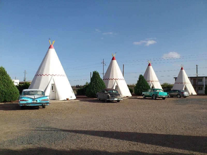 Via autostrada rientriamo a Holbrook, facciamo la spesa per la colazione e poi andiamo al fantastico Wigwam Hotel dove avevamo prenotato in anticipo.