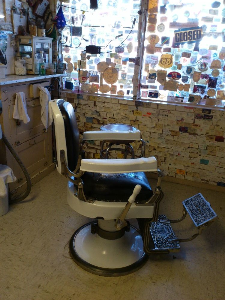 Ripartiamo e arriviamo a Seligman. Vediamo il negozio da barbiere di Angel, il primo sostenitore della Route 66, ma è una oscenità. Troppa, troppa demenzialità in vendita (polli morti, cheese burger con formaggio...). Ora fa caldo e il paesaggio ridiventa lentamente deserto.