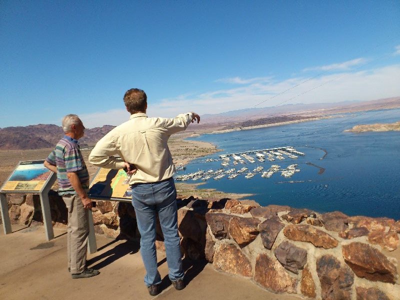 Andiamo al Visitor Center superando un controllo prima di entrare nell’area della Diga. Poi da uno dei tanti parcheggi fotografiamo la diga e andiamo a un punto panoramico da cui si vede il lago con la marina e le isole.
