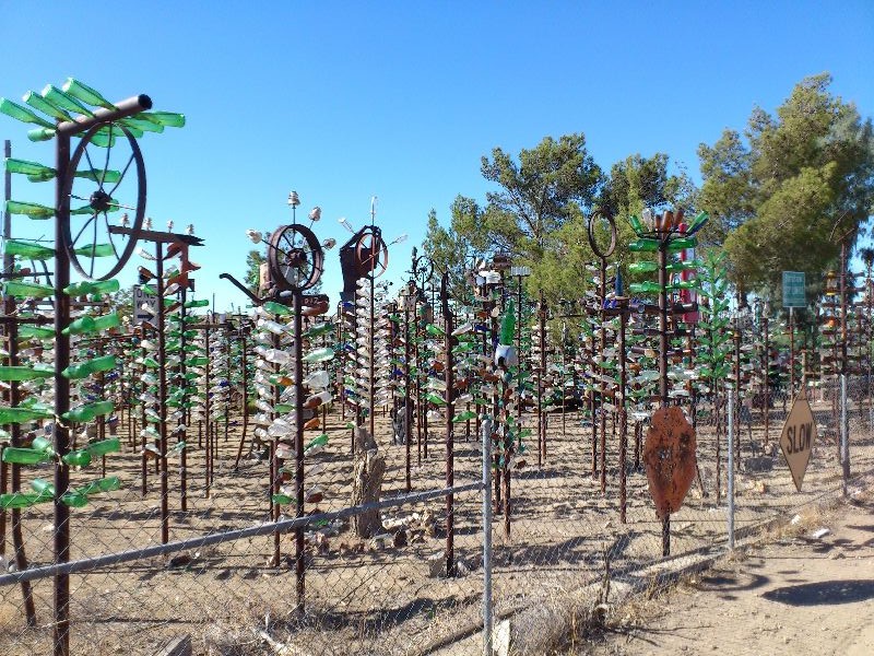 Ci fermiamo, come consigliato, poco prima di Oro Grande per fotografare la “foresta di bottiglie”, un vero non senso.